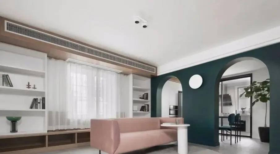平拱门。以圆拱为中间点,一般拱较低、弧度也较平。平拱的线条柔和耐看,能够很好地打破空间的刻板和物品僵硬,适合用于门洞不高、开口处较宽或者上方有梁限制的空间。