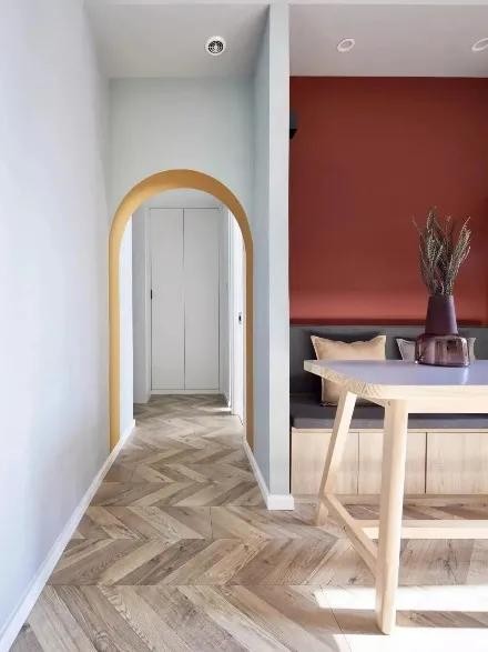 走廊。走廊门洞设计成拱形门,从中间走过有种穿越的神秘感。拱形门走廊还能为客厅、餐厅的背景,为空间增加亮眼点,如果给拱形门刷上亮色,更能丰富空间层次感。