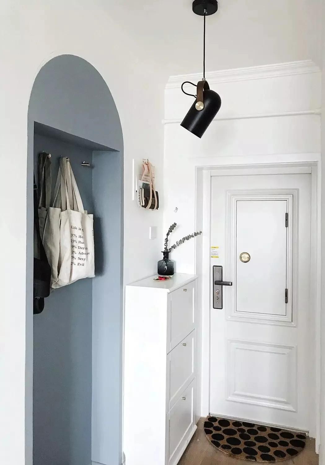 拱形壁龛。有些玄关较小无法做拱形门,可以在玄关墙面做拱形壁龛收纳,还节省了定制柜子的成本。