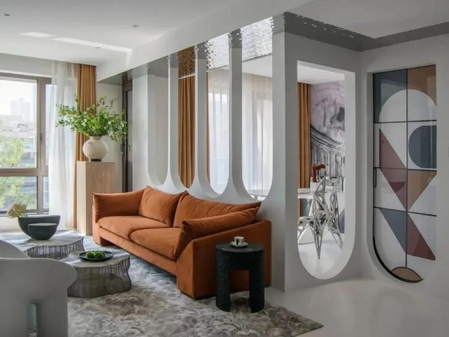 增加空间层次感。拱形门洞不仅能起到空间过渡的作用,如果在开阔的大空间,还可以自然地将其分割成前景后景,让整个空间更加有层次感!