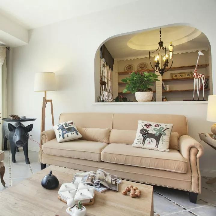 对于想要改造自家沙发背景墙的业主,可以考虑加入拱门元素,加入浮雕点缀纯色墙壁。