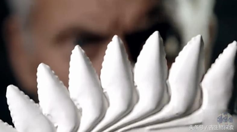 图注:旋齿鲨牙齿的复制品,可以看到牙齿两侧有锯齿结构,图片来自网络