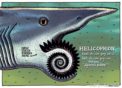 图注:旋齿鲨牙齿的主流生长位置,图片来自网络