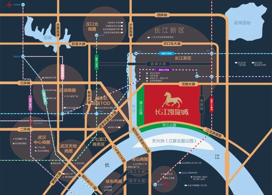 区位:长江凯旋城位于黄陂区武湖街汉施公路和发展路交汇处,新河大桥桥头,属于长江新区起步区,在限购范围内。项目直线距离三环线仅1.7公里,一线临长江,毗邻主干道汉施公路,是武湖离三环非常近的楼盘,环线位置不错。