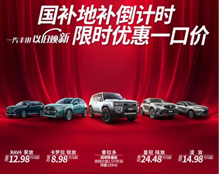 近日,一汽丰田推出了针对12月的限时优惠购车政策,旨在全力冲刺80万辆的年度销售目标。此次优惠涵盖了多款车型,包括卡罗拉1.2T、卡罗拉锐放、RAV4荣放、皇冠陆放、凌放、格瑞维亚以及亚洲龙2.0L等,均提供限时一口价优惠。