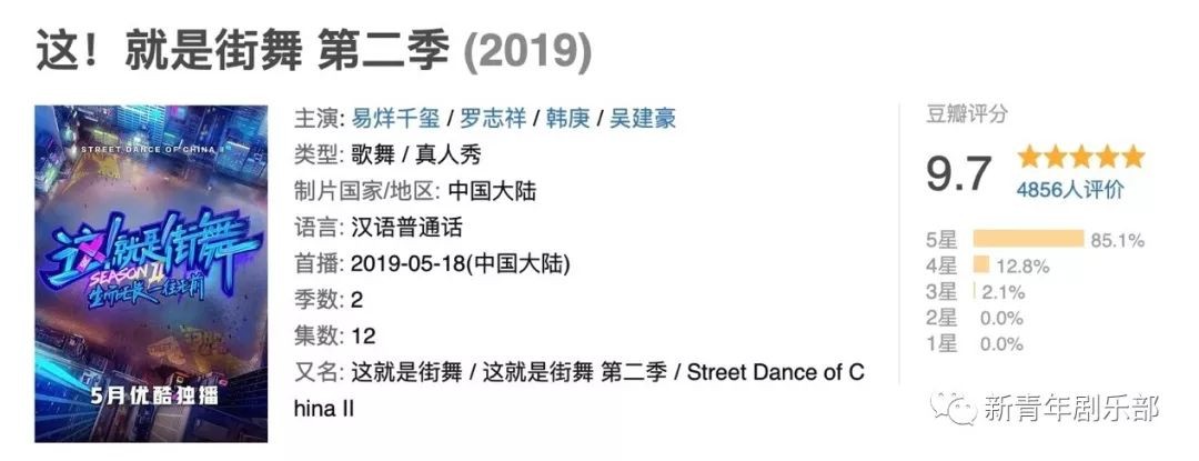 《这!就是街舞2》开播三小时后豆瓣开分,近5000名豆瓣用户给节目打出了9.7的高分!