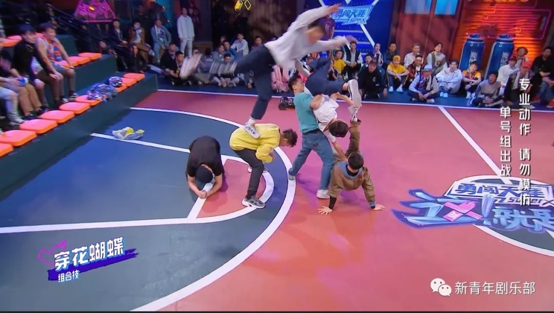 90后年轻Bboy有充足的体力作为底气,所以在比赛中不断放大招,穿花蝴蝶、战斗龙卷风等组合大招频出,仅用两轮就赢了汪坤灵、金小根所在的战队,他们的大型“高难度体操表演”赢得满堂红,让人血脉偾张。