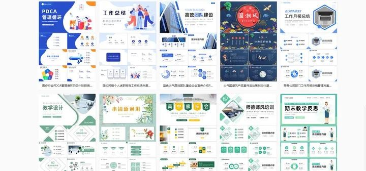 打开页面点击PPT模板,下面会看到很多各种场景下会用到的PPT模板,包括:工作总结、个人简历、论文答辩、教育培训、产品发布等相关的PPT模板都能下载。