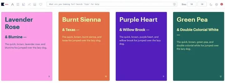 网站提供一系列完整的配色组合方案,不仅明确建议背景应采用何种颜色,还指出文本搭配哪种色彩。