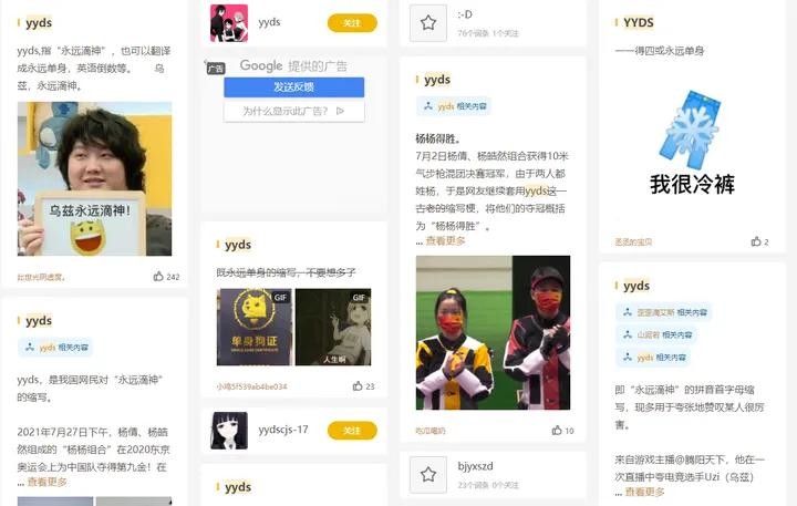 可以在这里看到B站梗、流行梗、魔幻笑话、吐槽等内容,比如最近流行的YYDS,不知道是什么意思,直接在这里搜就可以了,你可以看到各种的解释。