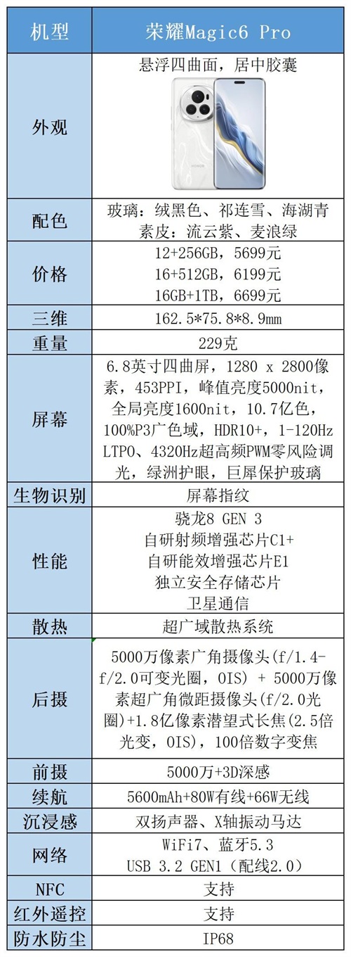 这是当前最新一代高端旗舰,悬浮四曲面屏、绿洲护眼、巨犀保护玻璃、卫星通信、可变光圈、亿级潜望长焦、3D深感镜头、66W无线快充、WiFi7、USB3.2、IP68等都是前沿技术和配置。预算充足的话,可以重点考虑。