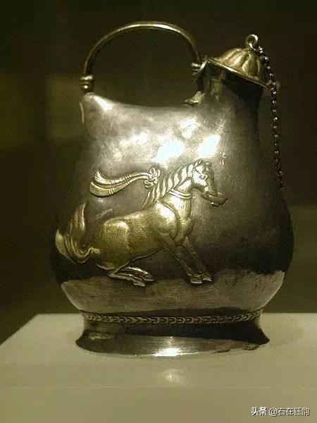 何家村出土的鎏金舞马衔杯纹仿皮囊银壶