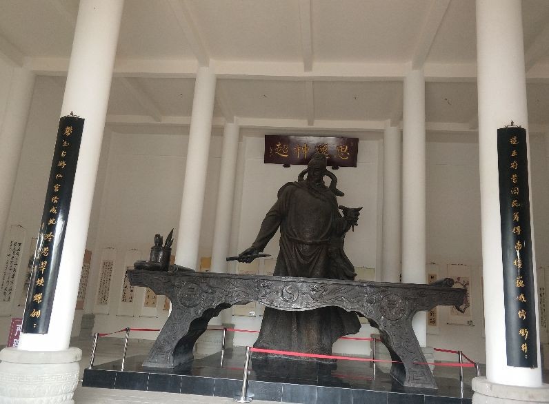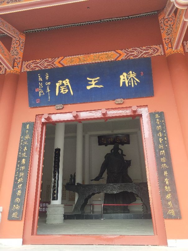 雕像估计是滕王吧,他的滕派画蝶非常漂亮,有道是:“滕王蚗蝶江都马,一纸千金不当价。”