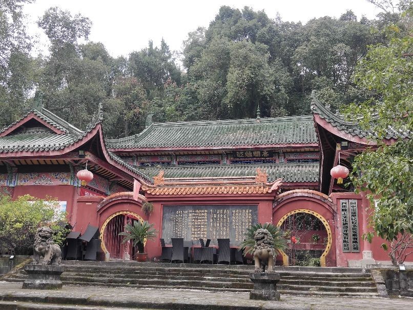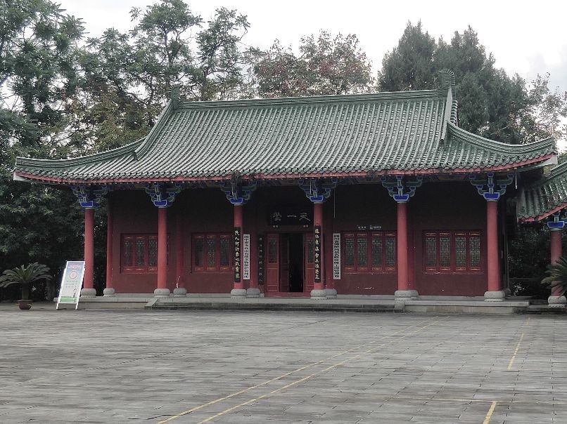 大殿,从来不见开门,今天一楼大门洞开,里有塑像一尊,书画若干。