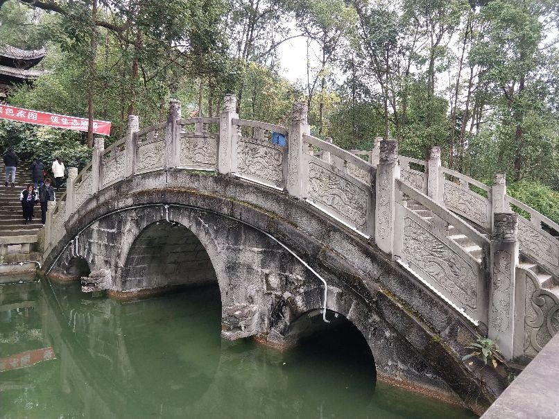 通往第二道坪有长方形水池,拱桥造型好看,先上后下,梯步也重复计着。