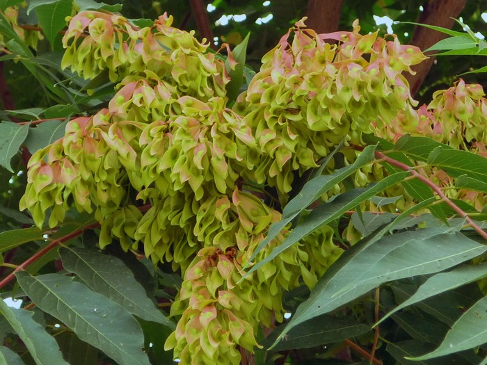 椿树,苦木科落叶乔木,古人称之为樗,因其基部腺点发散臭味,又称臭椿。臭椿是一种十分皮实的树,对土壤,气温,降水等条件要求不严,适应性非常强大,所以全国乃至世界各地,都能看到椿树的影子。而且,如果不是零距离接触,椿树留给人的观感一定是非常舒适的:主干笔直,所有的枝丫全部集中在树的顶部,很少有旁枝逸出,漂亮的羽状复叶会在树下遮蔽出浓浓的树荫。因为适应性强,椿树几乎可以生长在任何地方,无论是肥沃的园地,还是贫瘠的荒野,它都可以活出属于自己的精彩。所以,随时随处,都可以常常看到它或者伟岸挺拔,或者风姿绰约身影。