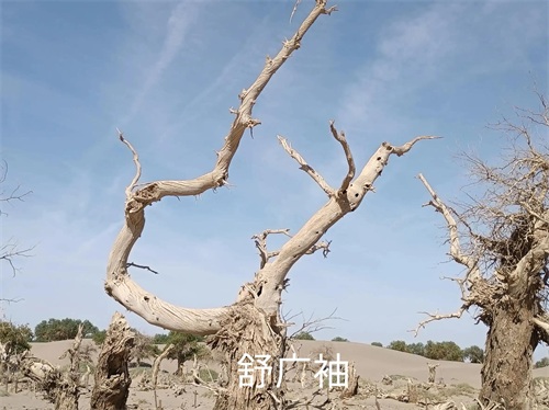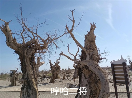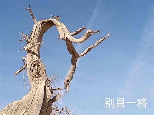 胡杨是一种奇特树种,生命力极强,具有耐腐特性,即使枯死的胡杨树干,依然直立在戈壁荒漠之上,形成形态怪异的悲壮景观。漫步在其中,又像置身一片雕塑园中,千奇百怪,神态万千,令人叹为观止。