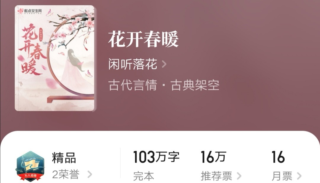 闲听落花7部经典古言:盛华、锦桐、花开春暖、暖君等熬夜看不停
