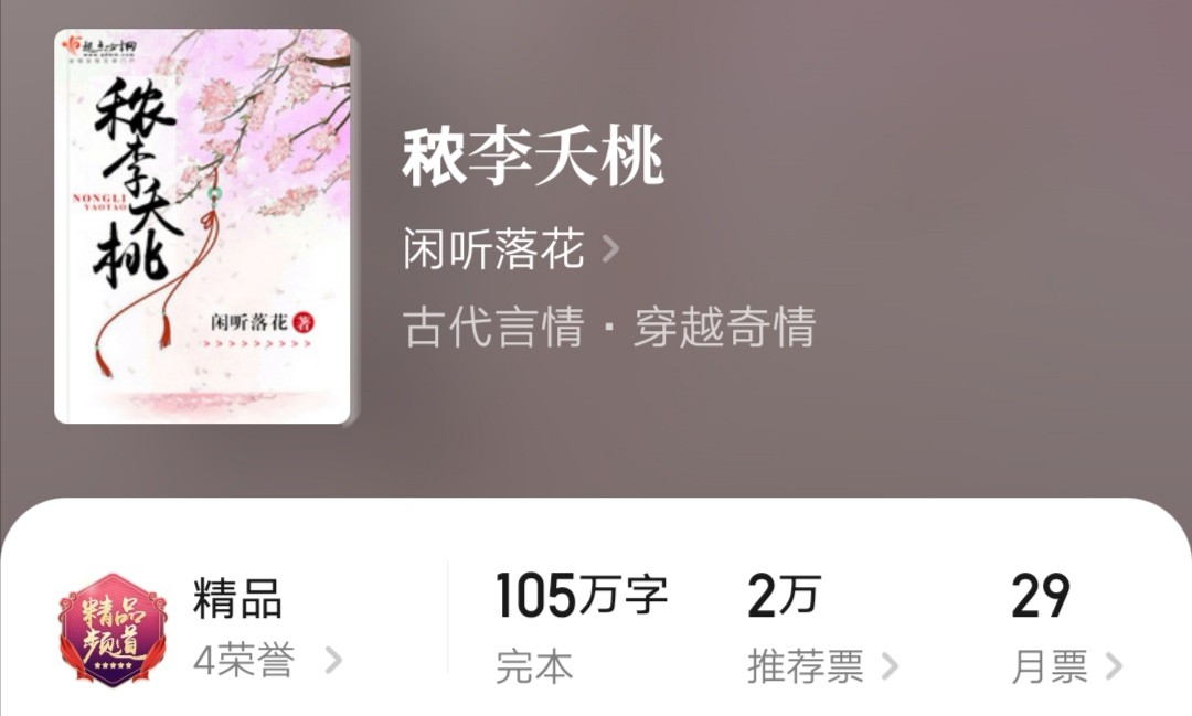 闲大笔下的女主大多都姓李,比如《花开春暖》的女主李小暖、《盛华》女主李夏、《锦桐》女主李桐、《暖君》女主李苒等。