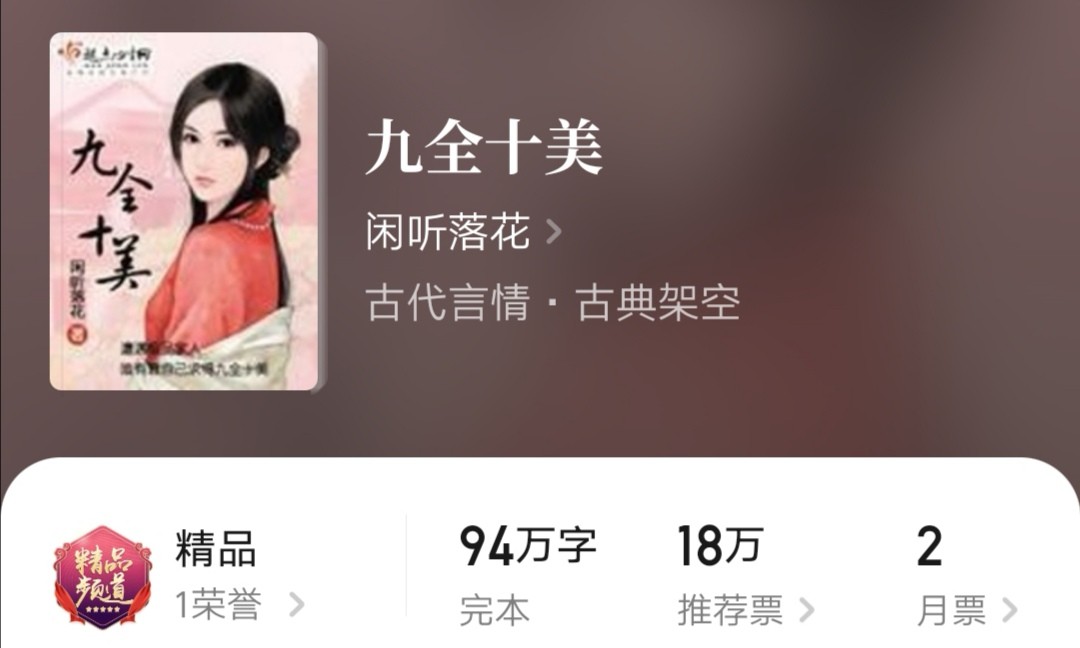 个人感觉闲大似乎对玄幻言情有一种偏好,两次想转型此类作品,比如《君归矣》和《妖夏》,但可能要求太高,觉得没有写出自己的想要的东西,就此太监了,转回又写她擅长的古言了。所以这几部太监作品就不列出来了。