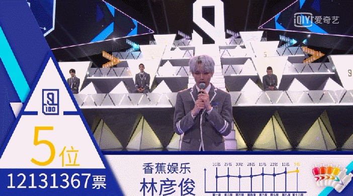 黄明昊获得了1457万票,高居第四,他是年龄最小的,2002年出生,如今已经是一个综艺咖了。林彦俊获得了1213万票,高居第五,林彦俊是香蕉娱乐的,也就是王思聪旗下艺人。