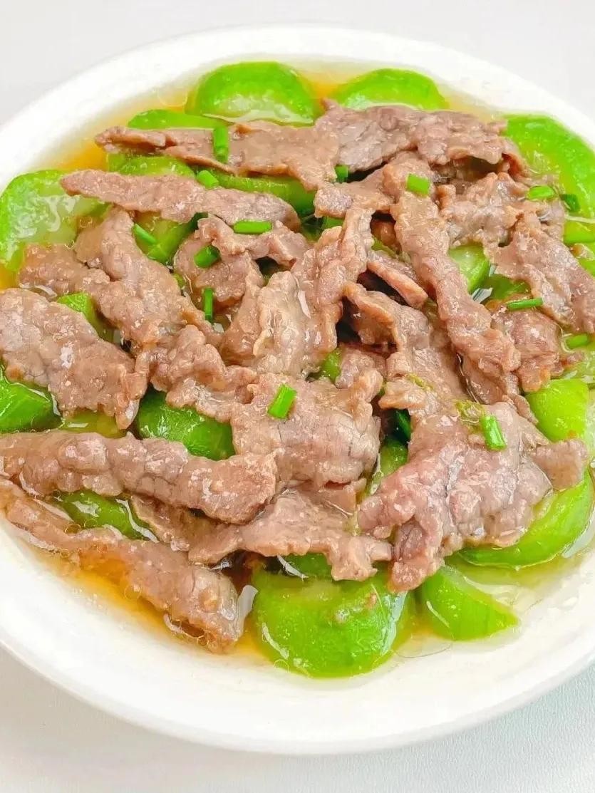 三、丝瓜蒸牛肉