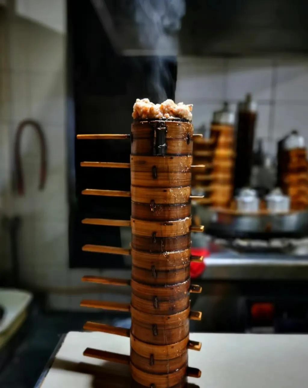 做万州格格的小蒸笼就像是只有巴掌那么大,而且其制作材料一定得是楠竹、水竹、斑竹等韧性好、材质硬的竹类。等着一个个的小格子里装满食材的时候,就可以放在大蒸笼上蒸制了。