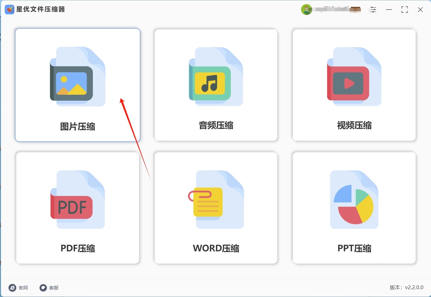 步骤1:首先请通过上方的下载地址或其他渠道将“星优文件压缩器”软件下载下来,软件下载完成后请将其打开,打开软件后请在软件的界面左侧选择【图片压缩】功能。