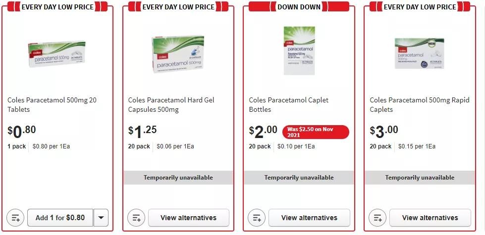 比如Coles就有4款名为Coles Paracetamol的止痛药,而且售价便宜,20片仅售0.8澳元。