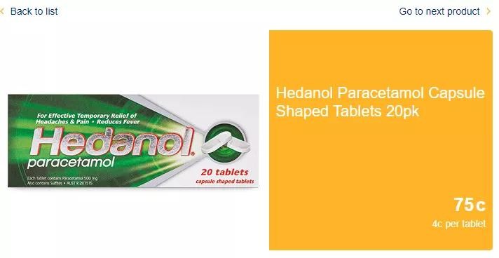Aldi超市则出售一款名为Hedanol的含有Paracetamol的止痛药。