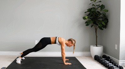 动作一:俯卧侧踢腿,首先我们俯卧在瑜伽垫上,手臂伸直支撑身体,双脚张开脚尖踮起分担身体重量,这时腰背在一条水平线,注意不是平卧,但是要与腿部成150°左右,如图所示。开始运动,把左腿往右边横踢,侧身,右手伸直触碰横踢右腿的脚尖,然后恢复原始动作,换边把右腿往左边横踢,左手触碰横踢右腿的脚尖,恢复原动作。就这样左右腿交替横踢,右左手交替触碰左右腿脚尖,20个来回为一组,每天做四组。