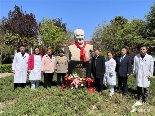 开播仪式结束后,济南市皮肤病防治院原副院长、南丁格尔奖章获得者刘振华和医护人员一起,在马海德雕像前敬献鲜花。