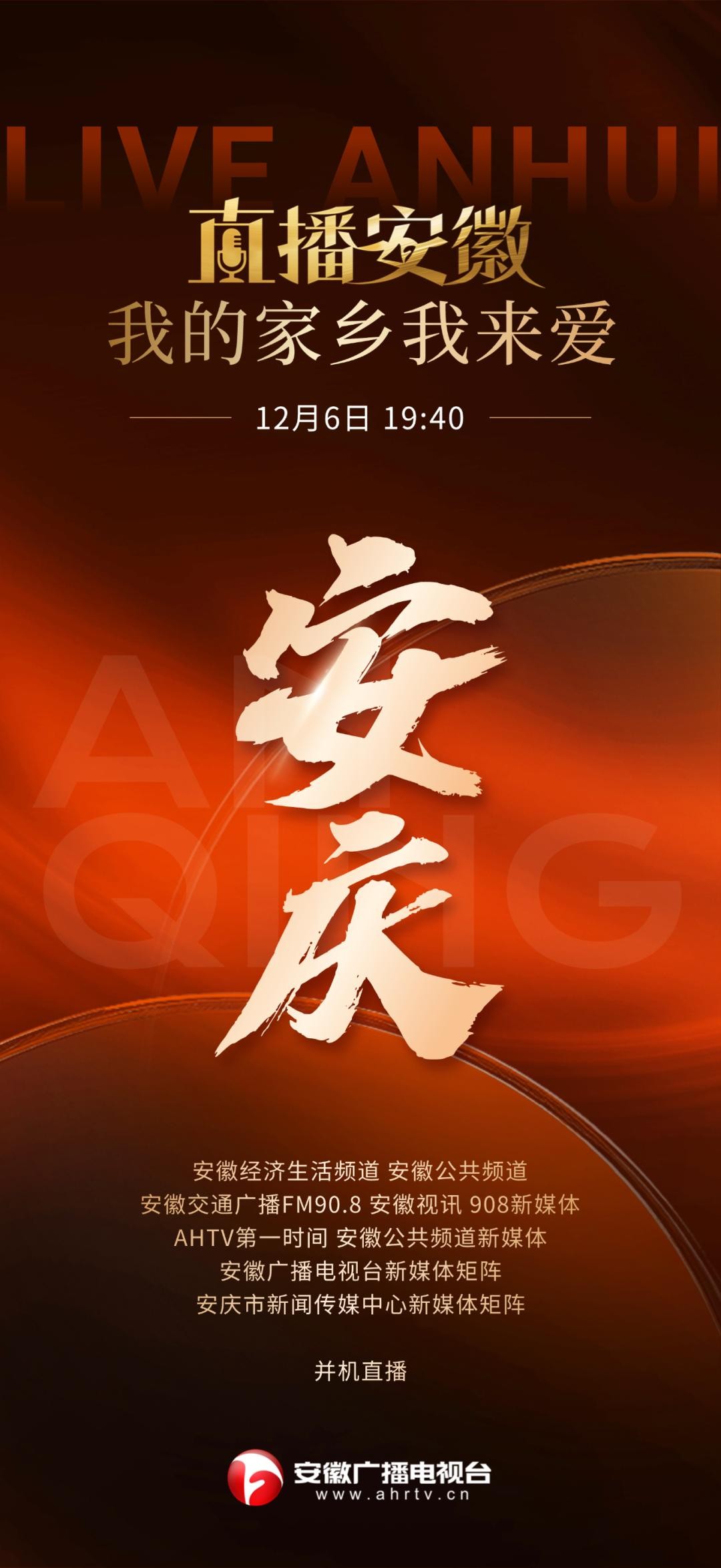 12月6日19:40,让我们相约安徽广播电视台《直播安徽》,安徽广播电视台交通广播的主播将走进安庆,与安庆市新闻传媒中心、安庆市宜秀区融媒体中心的主播一同带您探寻那些隐藏在日常中的小确幸。在这里,你会发现,安庆的美,不仅在于她的风景,在于她的文化,更在于她的温度,她的故事,她的生活。