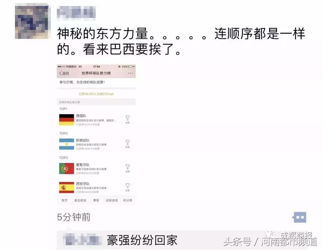 四只在世界杯球队势力榜中