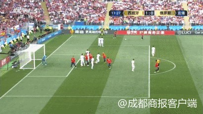 西班牙任意球开到禁区内
