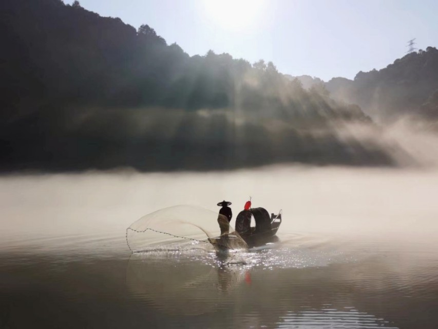 ️6:00出门口,由于民宿就住在小东江隔壁,走路 曩昔3分钟,咱们吃个早餐渐渐悠悠走曩昔,拿完票,坐园区的 巴士到二号站台欣赏渔翁撒网,记住 一定要去二号站台,刚好赶到渔翁撒网表演,不枉此行