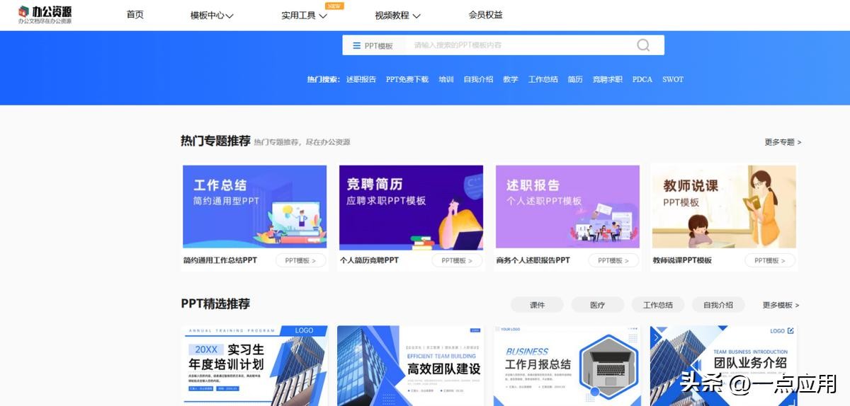 一个专业的模板资源网站,有提供各种文档模板、音效资源和办公素材,可按行业、风格、颜色等需求去搜索查找,不仅模板质量高,还支持一键套用。