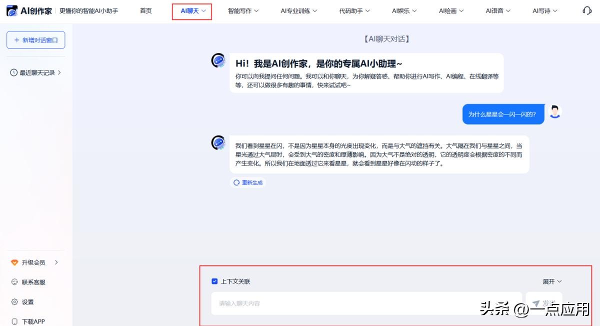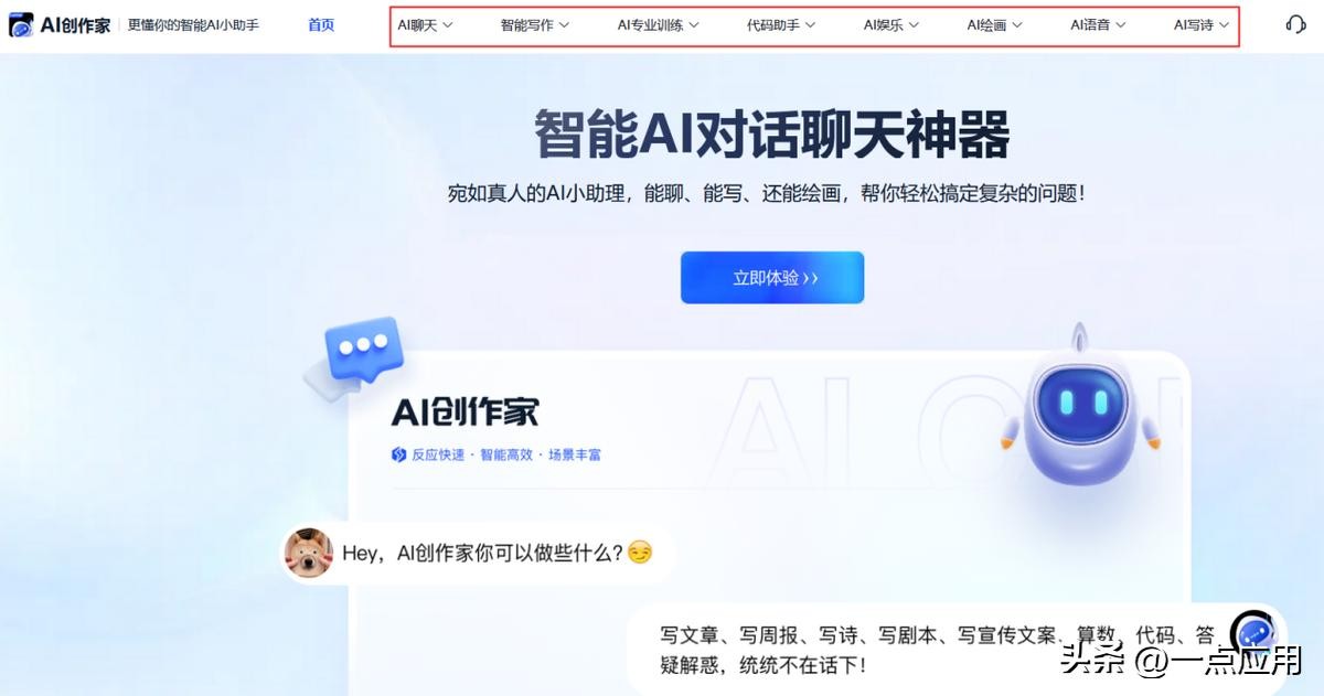 一款更懂你的智能AI小助手,反应迅速且适用场景丰富,AI聊天、智能写作、AI专业训练、AI娱乐、AI绘画等通通都能搞定,能助力多领域创作无所不能。