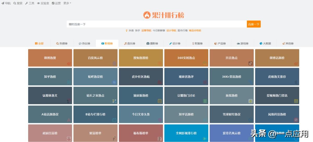 一键式快速查询各类排行榜的网站,囊括了热搜、热议、电影、音乐、摄影、游戏、财富等各大领域的权威排名榜单,可以说几乎能想到的榜单这里都有。虽然站点本身不存储内容,但能通过它来实现各类榜单快速跳转,信息真的很全。