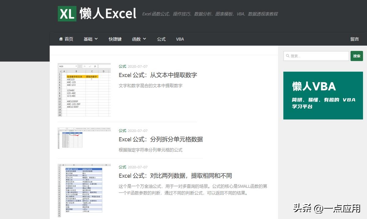 一个能帮助免费获取Excel知识的网站,界面干净简洁,功能版块也是一目了然,内容还很丰富,涵盖函数公式、操作技巧、数据分析、快捷键等多个维度,教程也有做到图文结合,会更加让人通俗易懂,自学起来是轻松又高效。