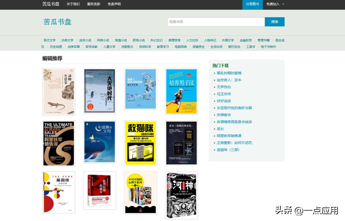 一个提供免费下载电子书的平台,界面清爽,收录的书籍种类繁多,包含了现代文学、人文社科、历史地理、武侠小说等多种类型,此外还根据资源的不同提供了pdf、mobi、equb等格式,点击即可直接本地下载,无需注册登录。