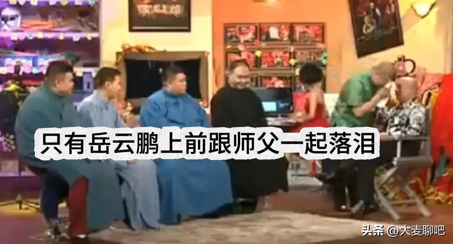 在场的德云社人员,只有岳云鹏上前跟师父抱头痛哭,给师父擦泪。