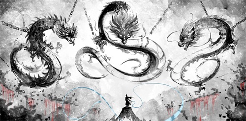 竖版一豹战三龙。