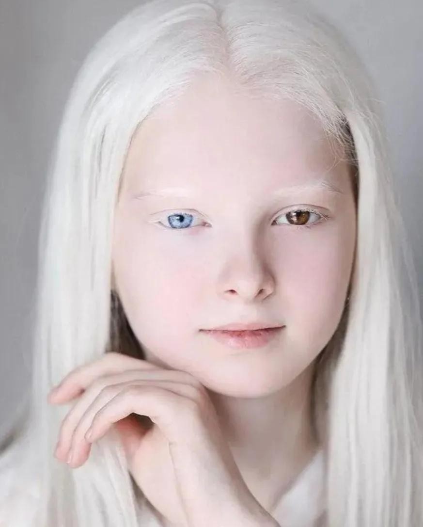 十六,这位特别的小女孩,她同时拥有异色症和白化症,这种情况极为罕见。