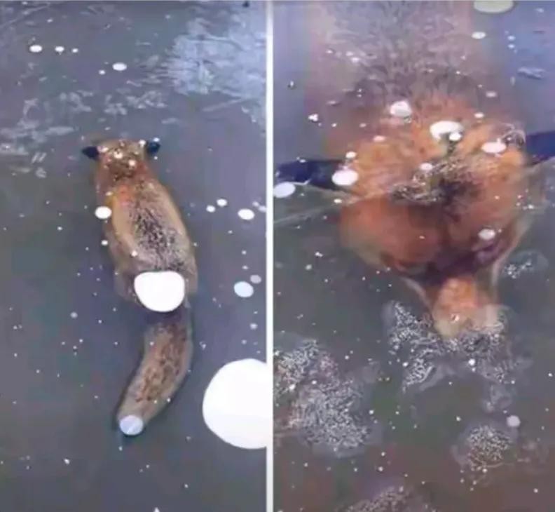 十八,你见过被冰封在湖面下的狐狸吗?看它的样子似乎是被活活冻死在这里的,大自然惊悚的一面着时让人害怕。