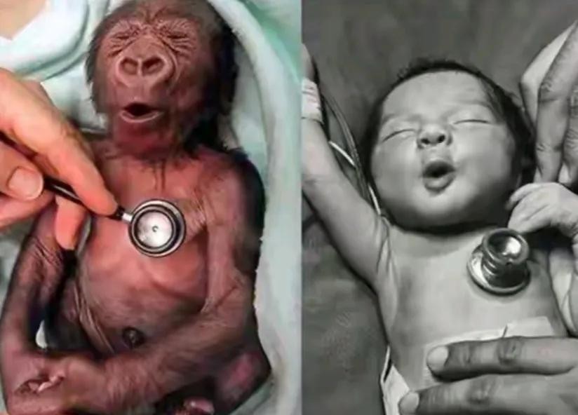 十四,人类和猴出生后第一次体检,做出了同样的表情,人类和猩猩的共同点远远比我们想像的要多。