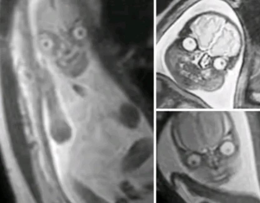九,磁共振扫描出来的婴儿面部,是不是看着有点吓人。
