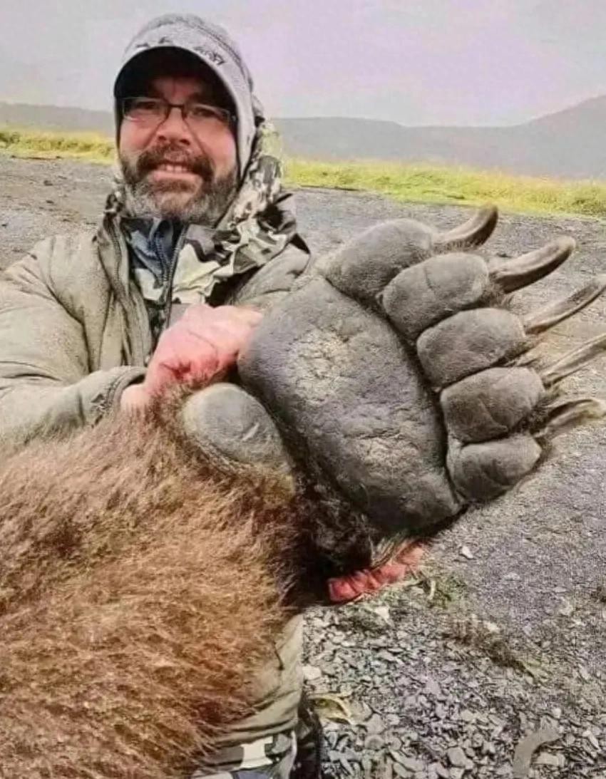 一,灰熊的大小,通过熊掌的照片你就能想象到吧?