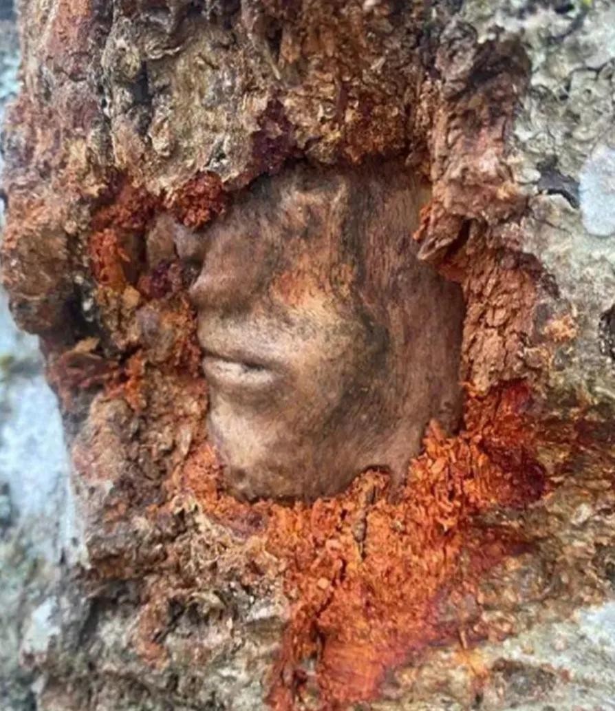 十三,探险家偶然发现的一棵树,树干上的纹路像是人脸一样,充满了神秘感。
