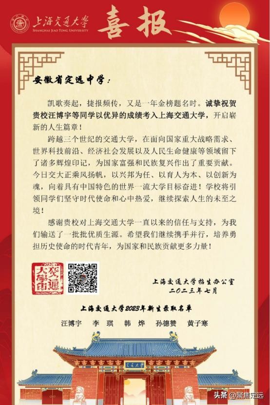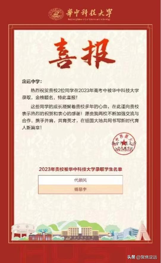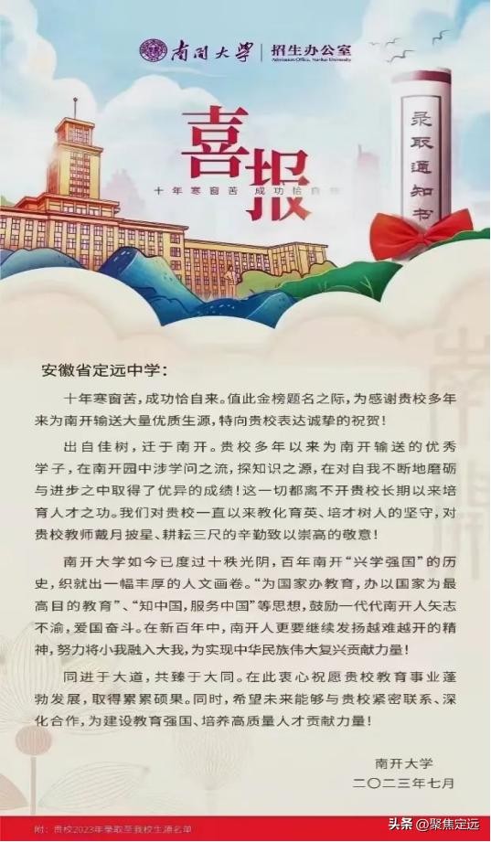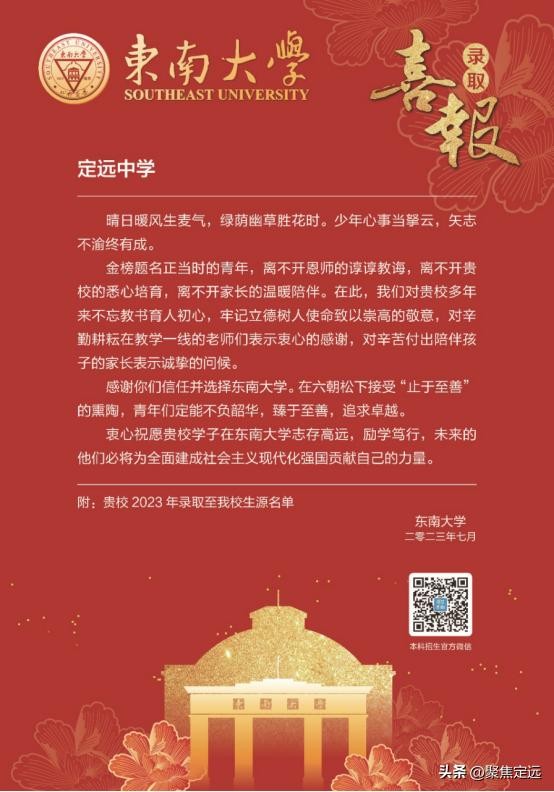 向定远中学发来录取喜报!